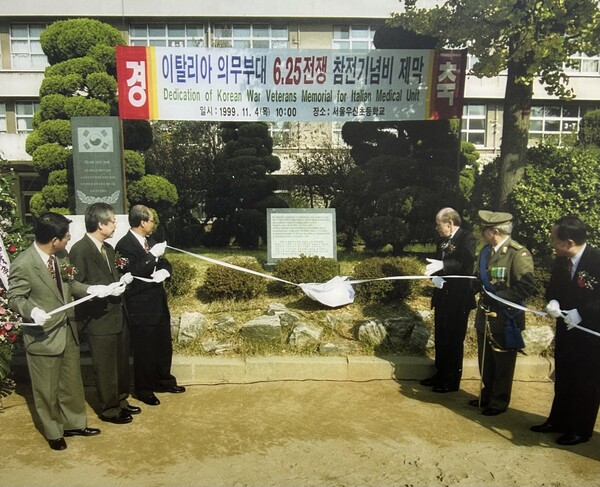 이탈리아 의무부대 6·25전쟁 참전기념비 제막 순간 사진